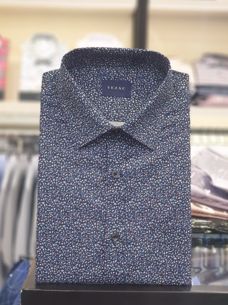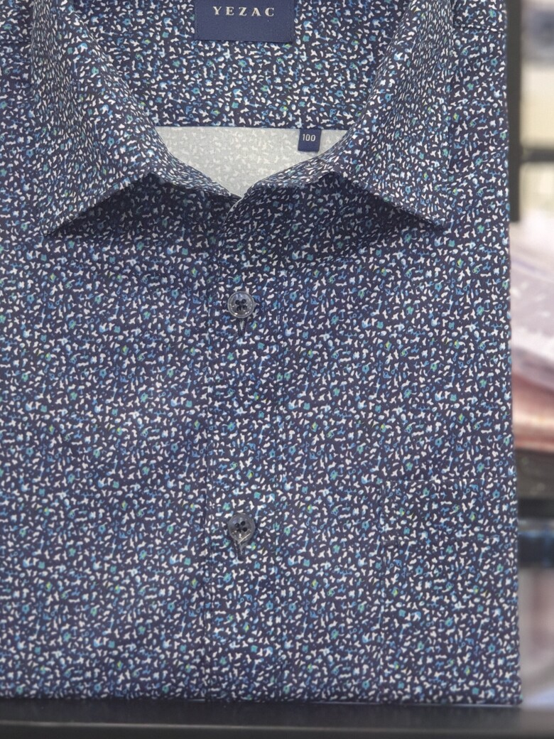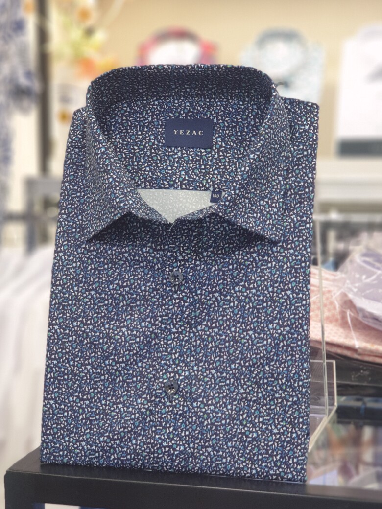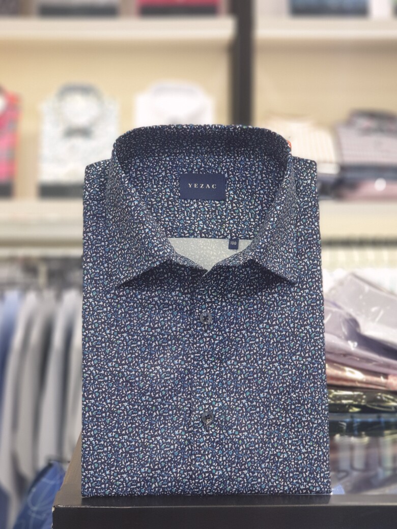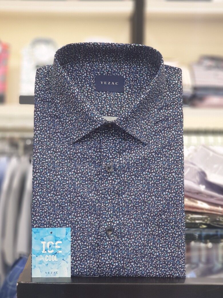 프린트 폴리 스판 링클프리 일반핏셔츠