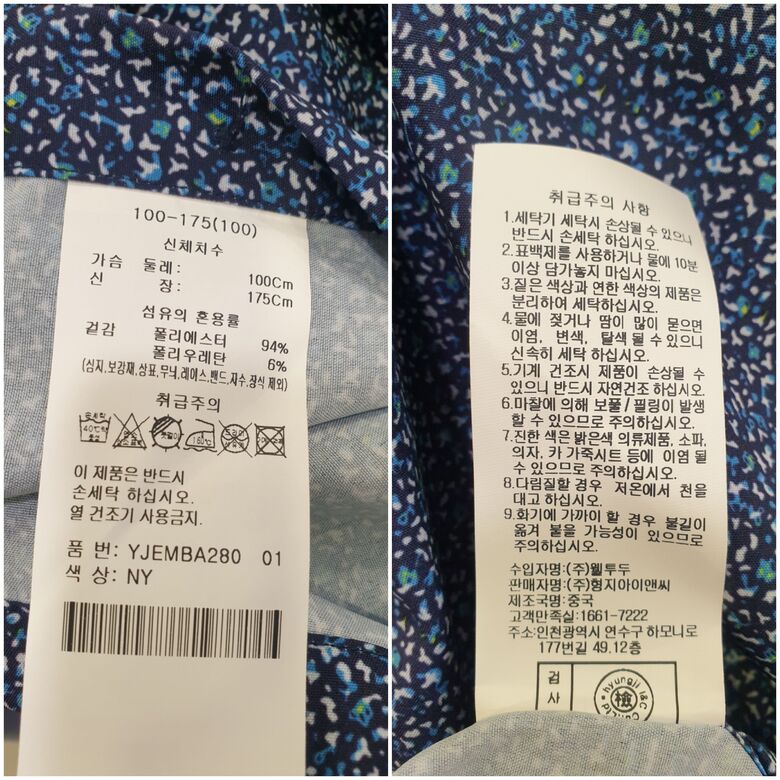 | 6. 세탁방법 및 취급시 주의사항 | 상품상세참조 |