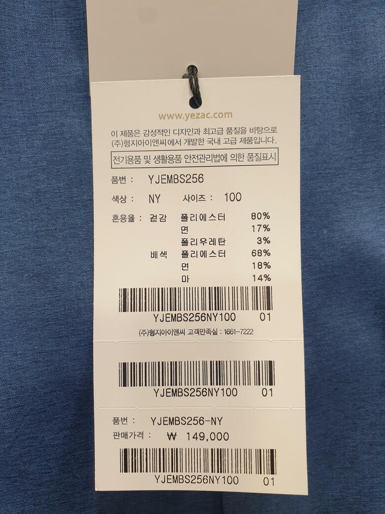 | 1. 제품 소재 (섬유의 조성 또는 혼용률을 백분율로 표시, 기능성인 경우 성적서 또는 허가서) | 상품상세참조 |