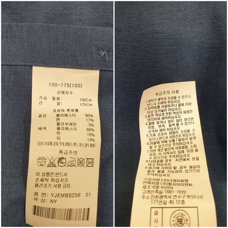 | 6. 세탁방법 및 취급시 주의사항 | 상품상세참조 |