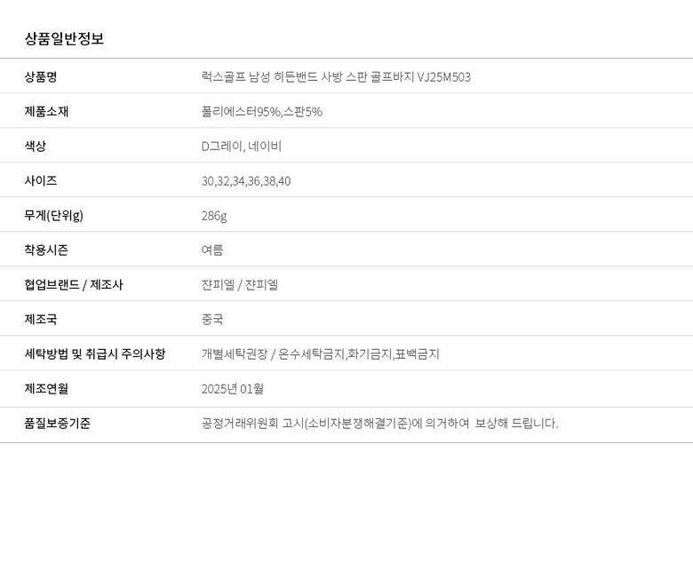 보스케 남자 여름 골프웨어 히든밴드 스판 골프바지 BQ250522205
