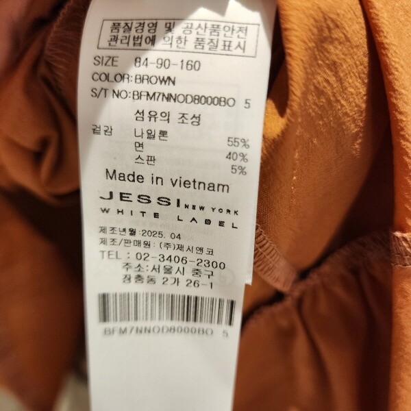| 1. 제품 소재 (섬유의 조성 또는 혼용률을 백분율로 표시, 기능성인 경우 성적서 또는 허가서) | 나일론55%,면40%,스판5% |