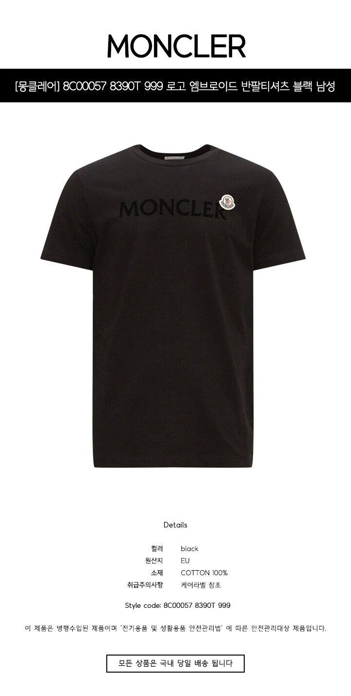 [명품] 8C00057 8390T 999 로고 엠브로이드 반팔티셔츠 블랙 남성 티셔츠 /