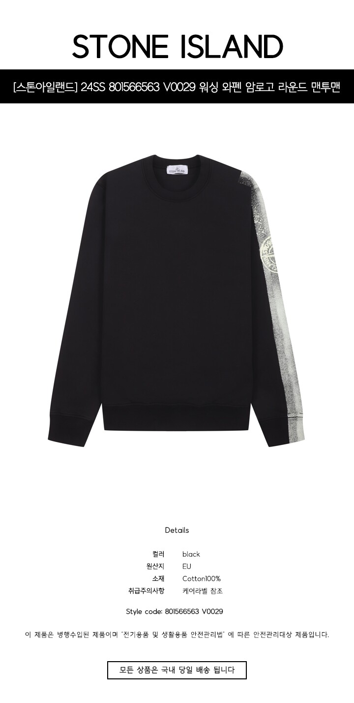 #리본즈코리아 #801566563V0029 #[명품] #24SS #801566563 #V0029 #워싱 #와펜 #암로고 #라운드 #맨투맨 #블랙 #남성 #/ #의류 #상의