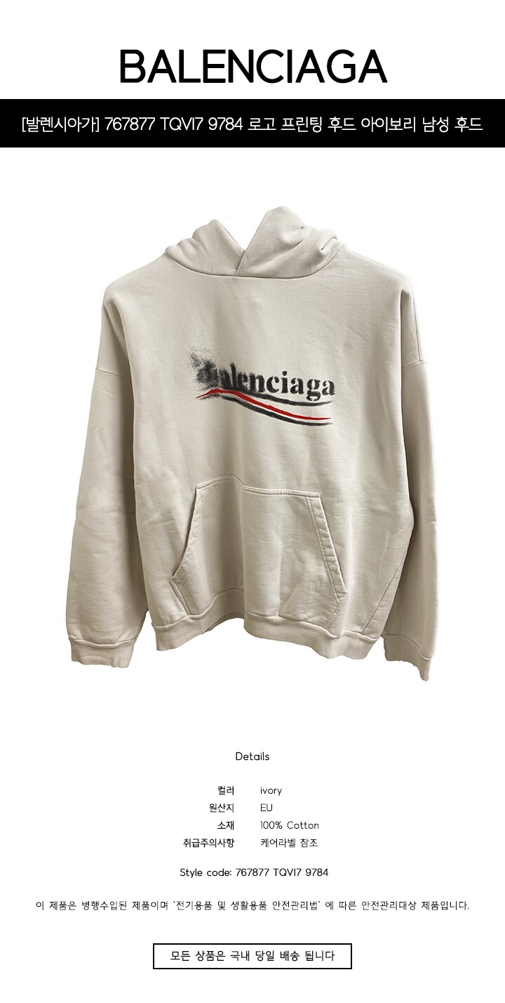 #리본즈코리아 #767877TQVI79784 #[명품] #767877 #TQVI7 #9784 #로고 #프린팅 #후드 #아이보리 #남성 #/ #의류 #상의