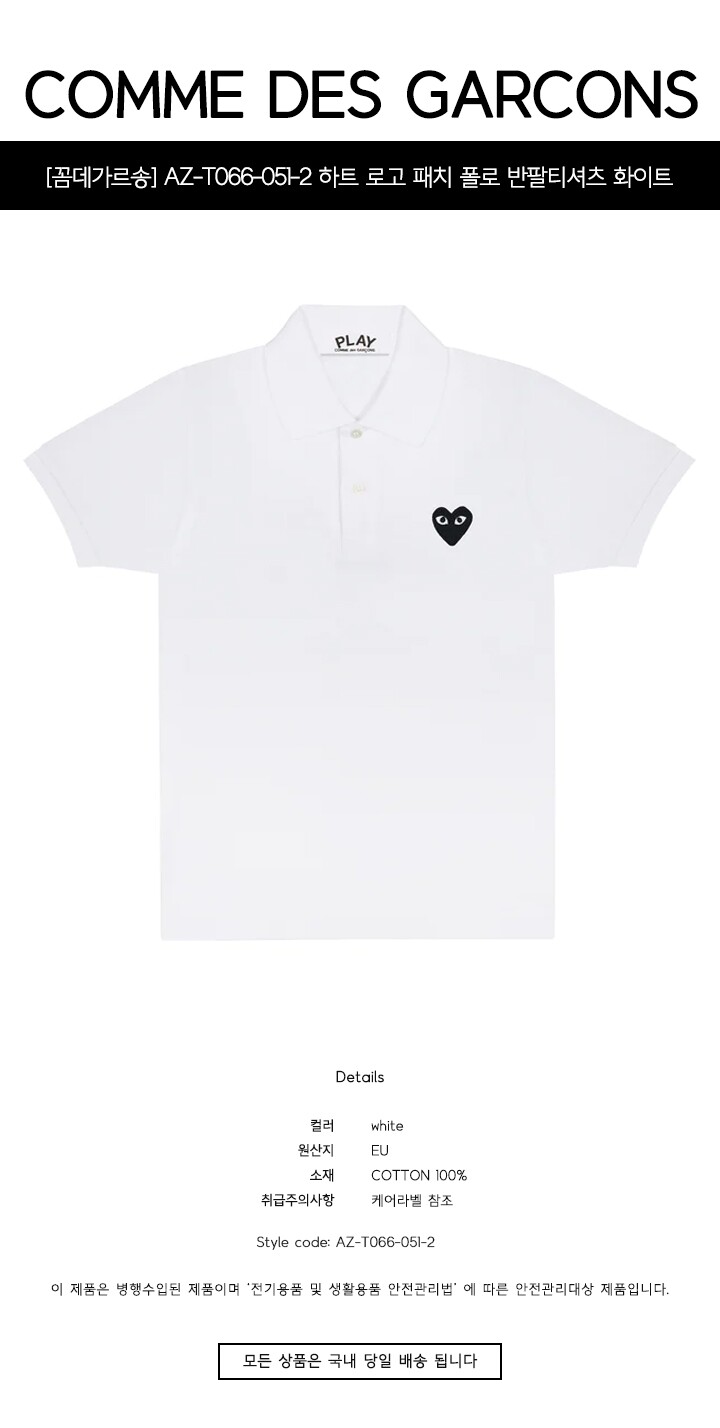 [명품] AZ T066 051 2 하트 로고 패치 폴로 반팔티셔츠 화이트 남성티셔츠 /