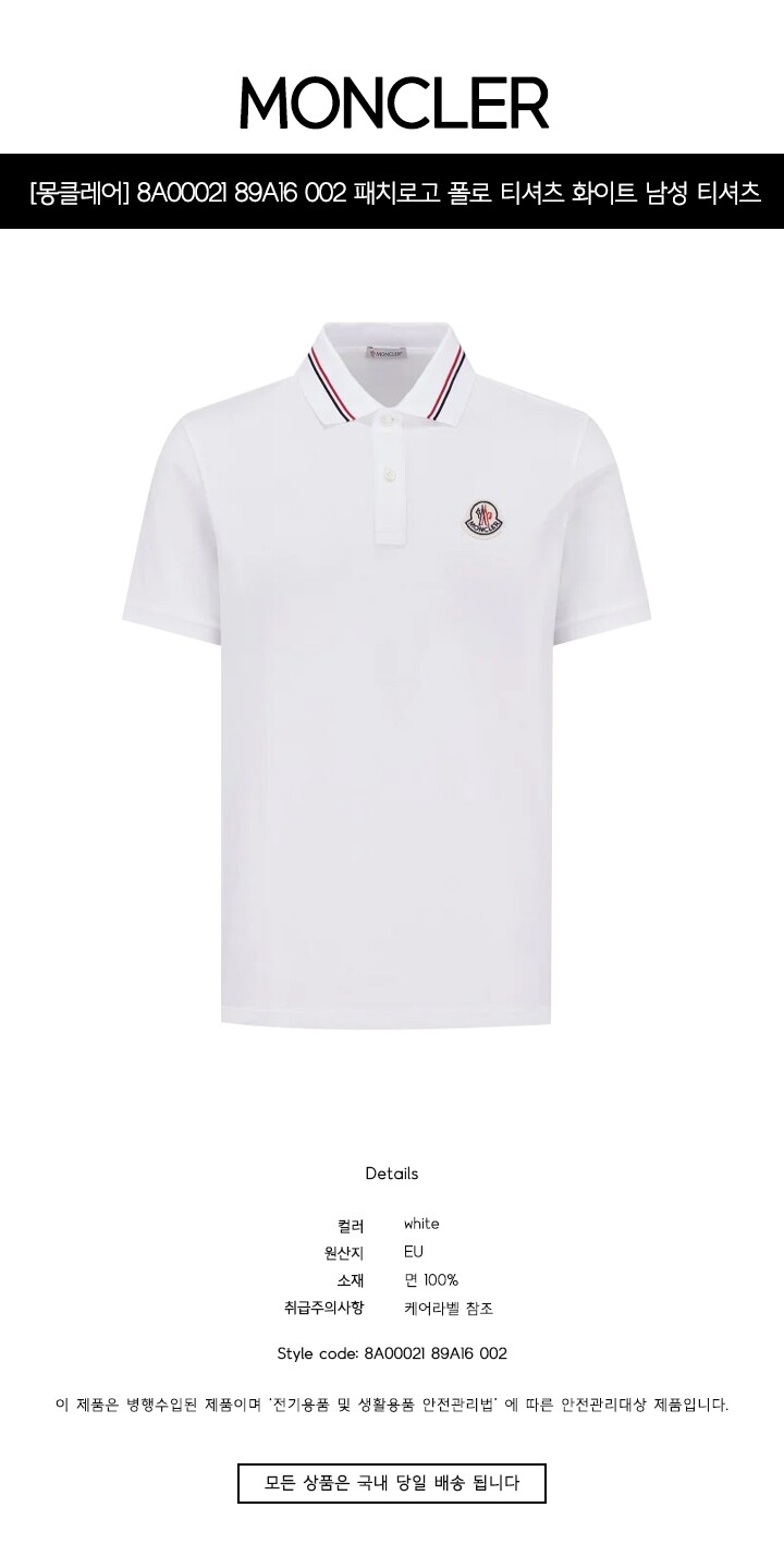 [명품] 8A00021 89A16 002 패치로고 폴로 티셔츠 화이트 남성 티셔츠 /
