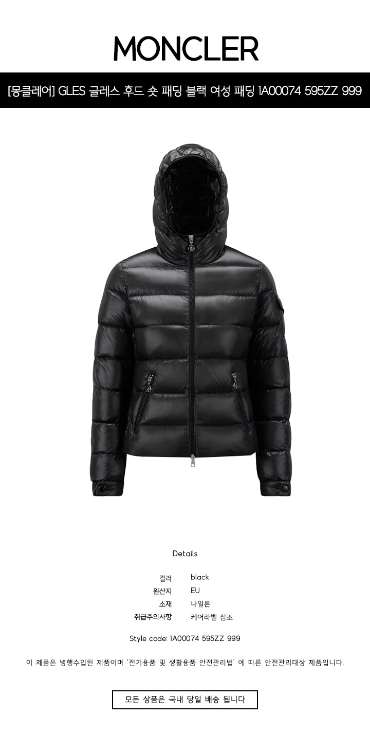 [명품] GLES 글레스 후드 숏 패딩 블랙 여성 패딩 1A00074 595ZZ 999 /