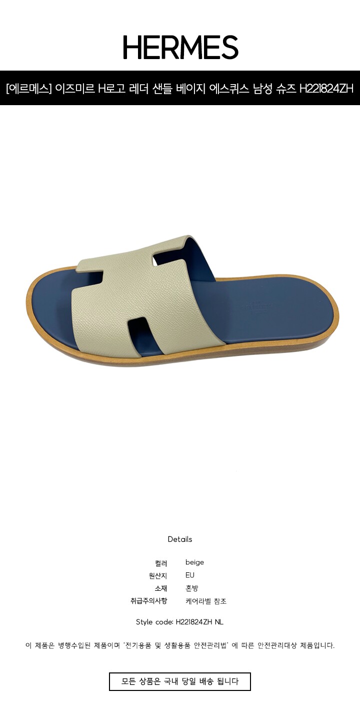 [명품] 이즈미르 H로고 레더 샌들 베이지 에스퀴스 남성 슈즈 H221824ZH NL / TRN