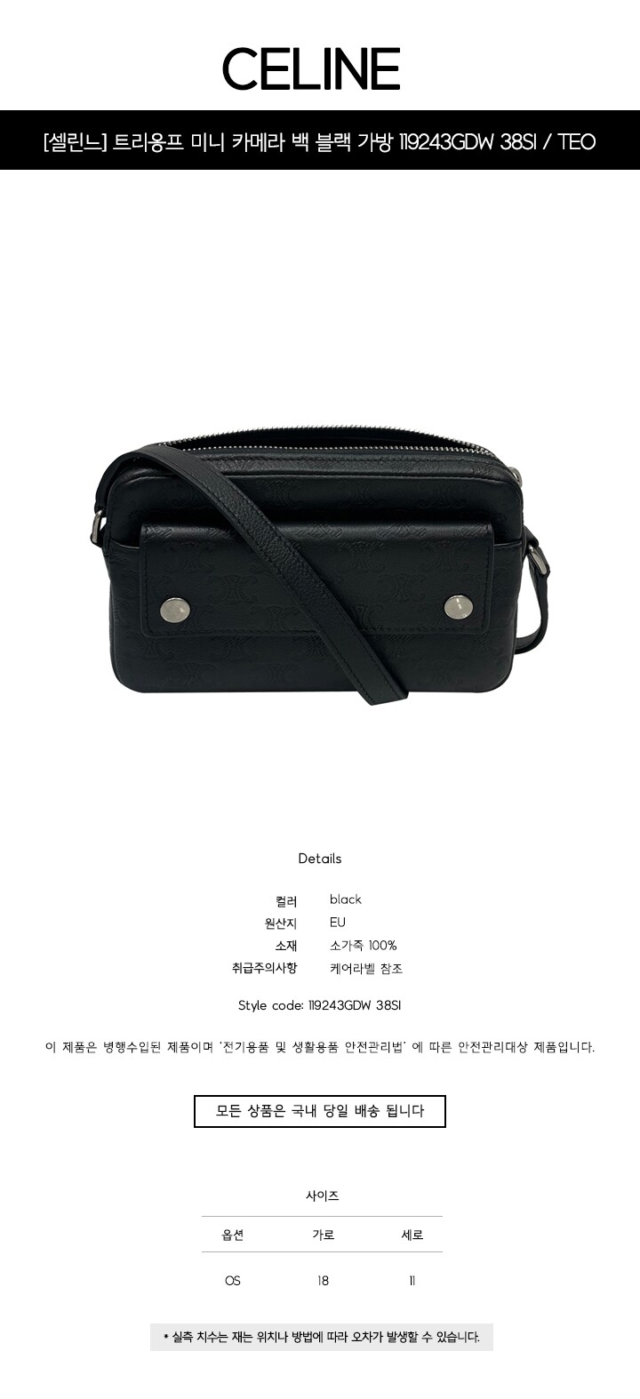 - #리본즈코리아 #119243GDW38SI #[명품] #트리옹프 #미니 #카메라 #백 #블랙 #가방 #119243GDW #38SI #/ #공용 #가방/핸드백 #크로스/메신저백 #크로스백