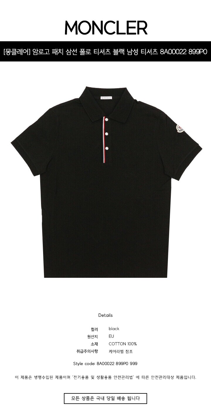[명품] 암로고 패치 삼선 폴로 티셔츠 블랙 남성 티셔츠 8A00022 899P0 999 / TSH