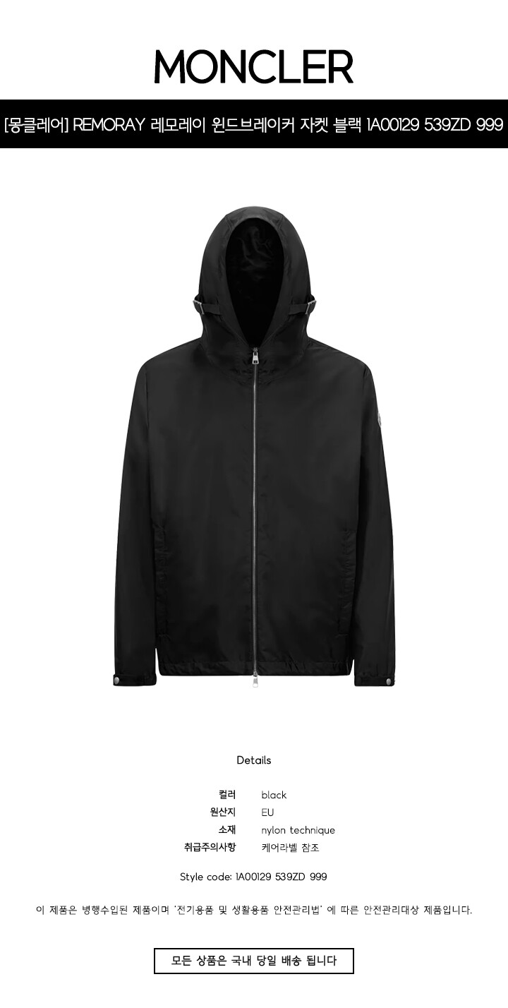 - #리본즈코리아 #1A00129539ZD999 #[명품] #REMORAY #레모레이 #윈드브레이커 #자켓 #블랙 #남성 #1A00129 #539ZD #999 #/ #의류 #아우터 #캐주얼자켓