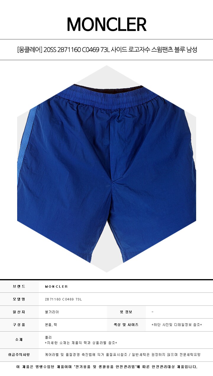 - #리본즈코리아 #2B71160C046973L #[명품] #20SS #2B71160 #C0469 #73L #사이드 #로고자수 #스윔팬츠 #블루 #남성 #팬츠 #/ #의류 #하의 #반바지