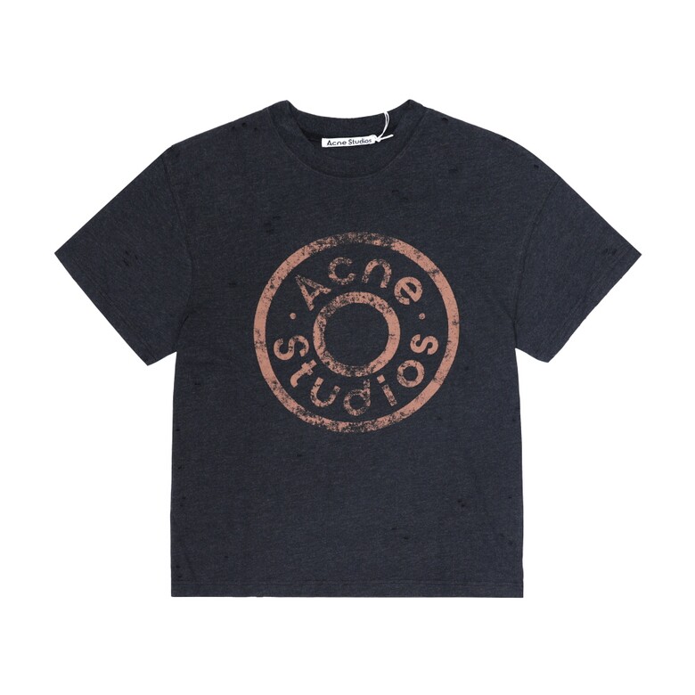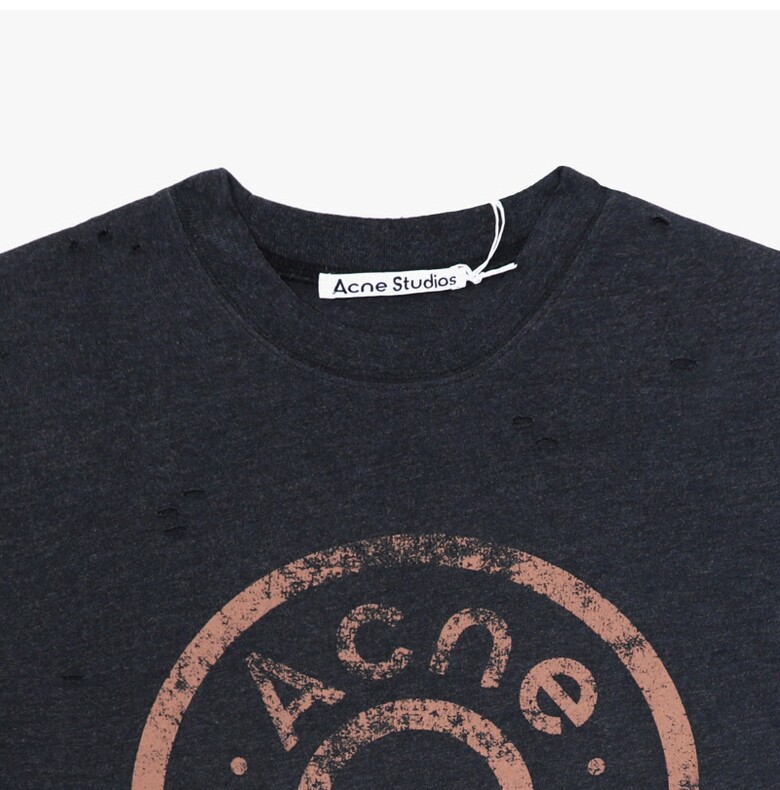 아크네스튜디오 CL0294 BLACK MELANGE (975) 버튼 로고 디스트레스 공용 반팔티