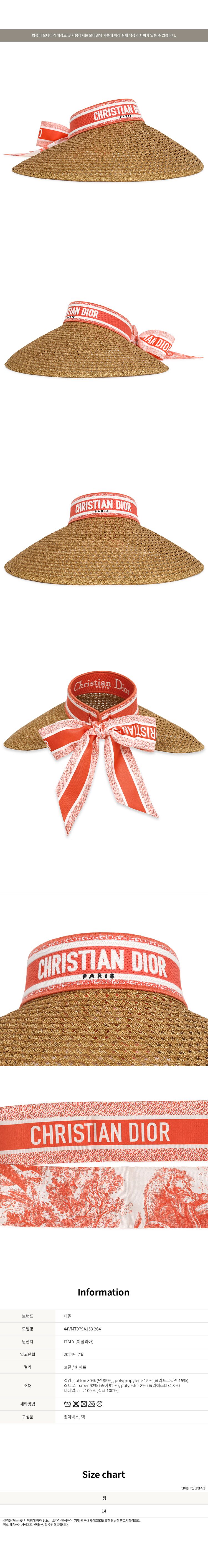 #리본즈코리아 #44VMT979A153264 #[명품] #디올 #코랄 #리비에라 #D #Ocean #미차 #바이저 #햇 #44VMT979A153 #264 #여성 #패션잡화 #모자 #버킷햇벙거지