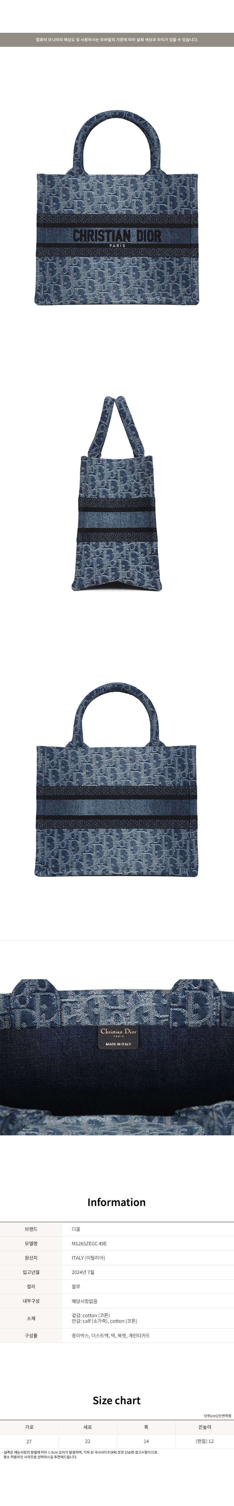 - #리본즈코리아 #M1265ZEGC49E #[명품] #24SS #디올 #블루 #데님 #오블리크 #북 #토트 #스몰백 #M1265ZEGC #49E #여성 #가방/핸드백 #토트백