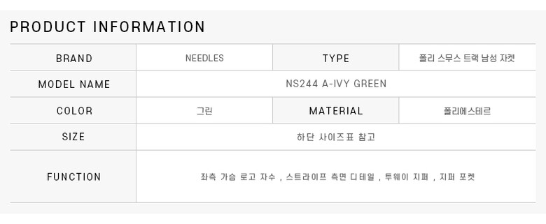 [명품] 니들스 NS244 A Ivy Green 폴리 스무스 트랙 남성 자켓