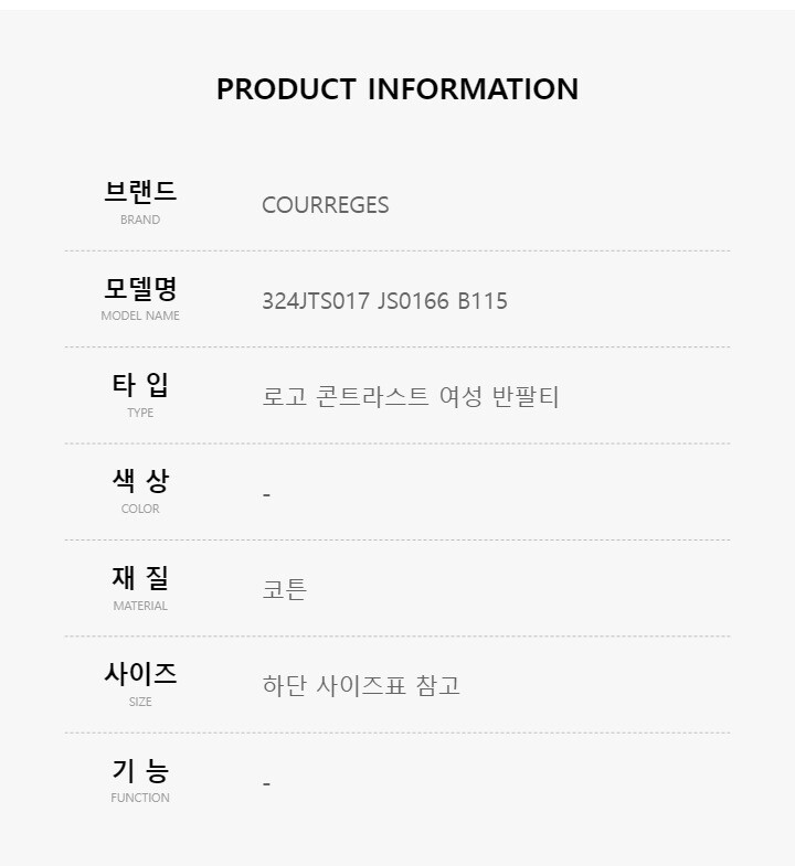 [명품] 꾸레쥬 324JTS017 JS0166 B115 로고 콘트라스트 여성 반팔티