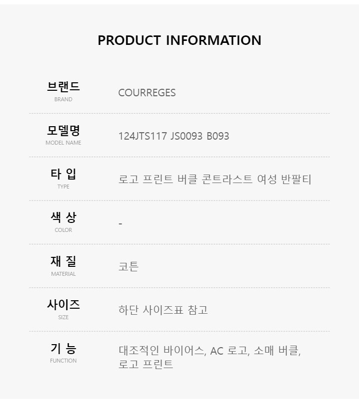 [명품] 꾸레쥬 124JTS117 JS0093 B093 로고 버클 콘트라스트 여성 반팔티