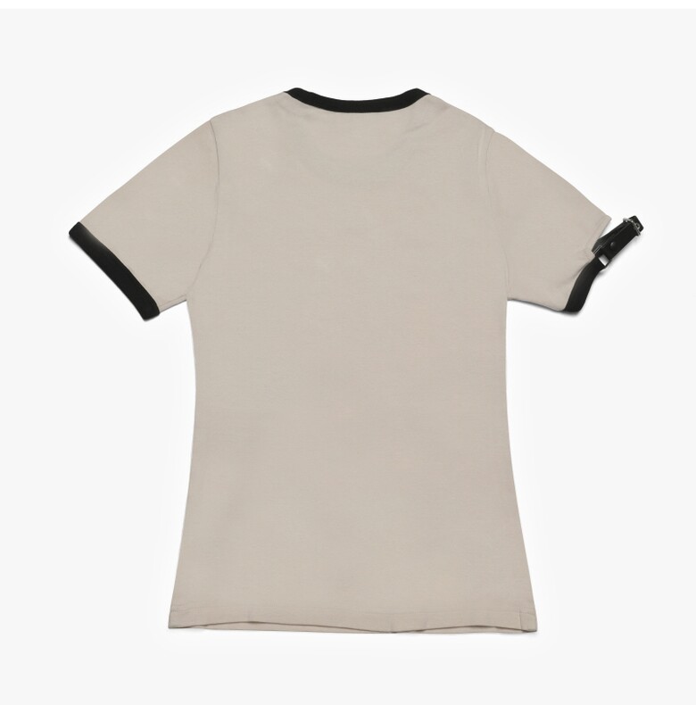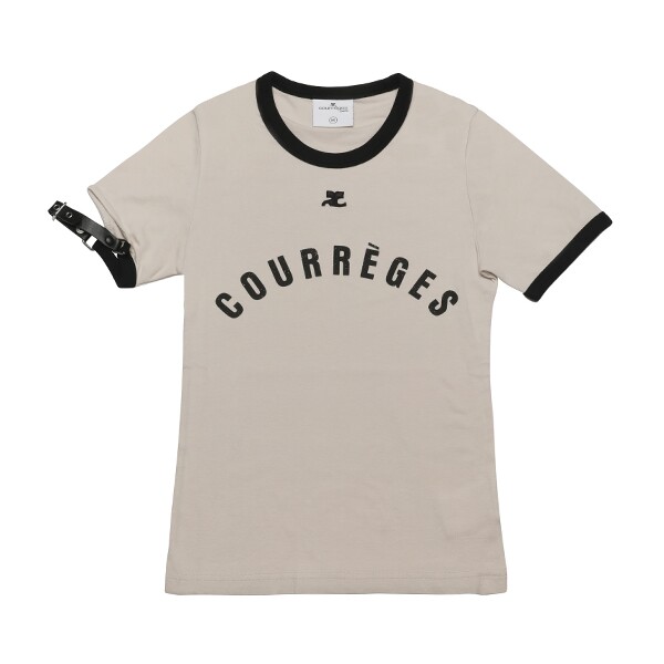 - #리본즈코리아 #124JTS117JS0093B093 #[명품] #꾸레쥬 #124JTS117 #JS0093 #B093 #로고 #버클 #콘트라스트 #여성 #반팔티 #의류 #상의 #티셔츠