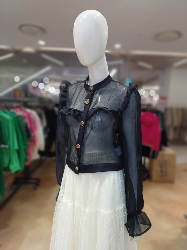 르니앤맥코이 어깨퍼프 시스루소매 블라우스MM05BL407