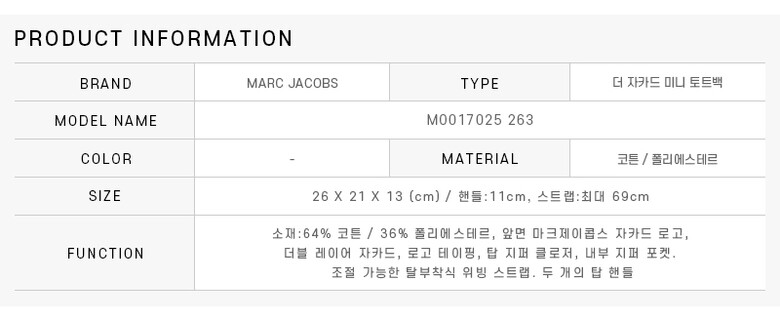 [명품] 마크제이콥스 M0017025 263 더 자카드 미니 탑 핸들 토트백