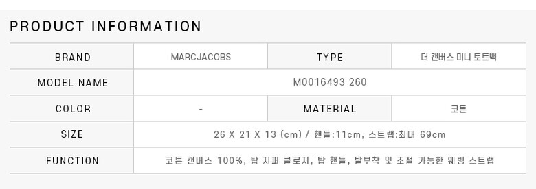 [명품] 마크제이콥스 M0016493 260 더 캔버스 미니 탑 핸들 토트백