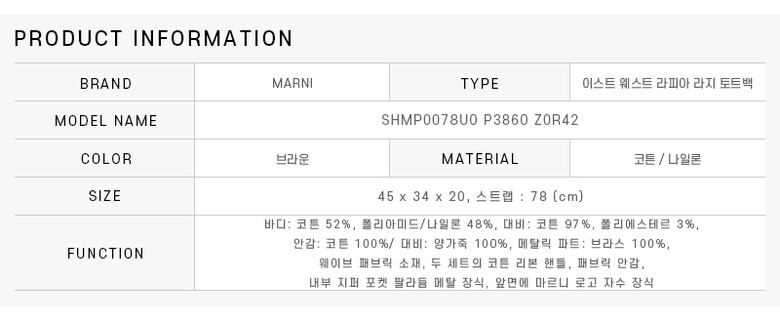 [명품] 마르니 SHMP0078U0 P3860 Z0R42 이스트 웨스트 라피아 라지 탑 핸들 토트백