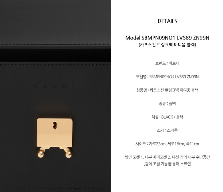 [명품] 마르니 SBMPN09NO1 LV589 ZN99N 트렁크 카프스킨 미디움 숄더백