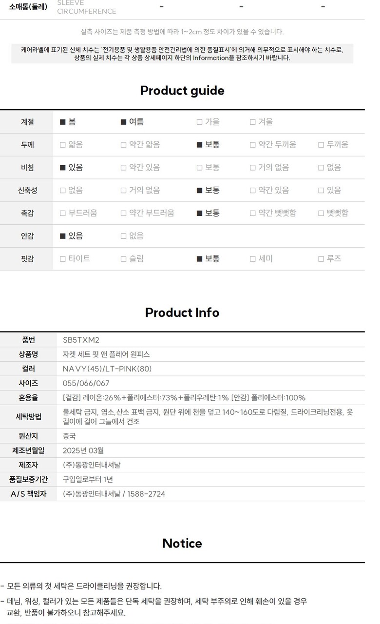 6. 세탁방법 및 취급시 주의사항 | 상품상세참조 |