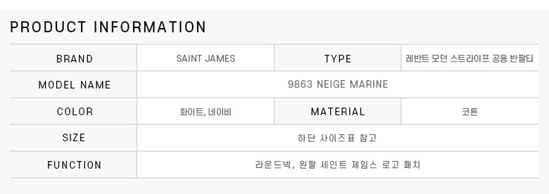 [명품] 세인트제임스 9863 NEIGE MARINE 레반트 모던 스트라이프 공용 반팔티