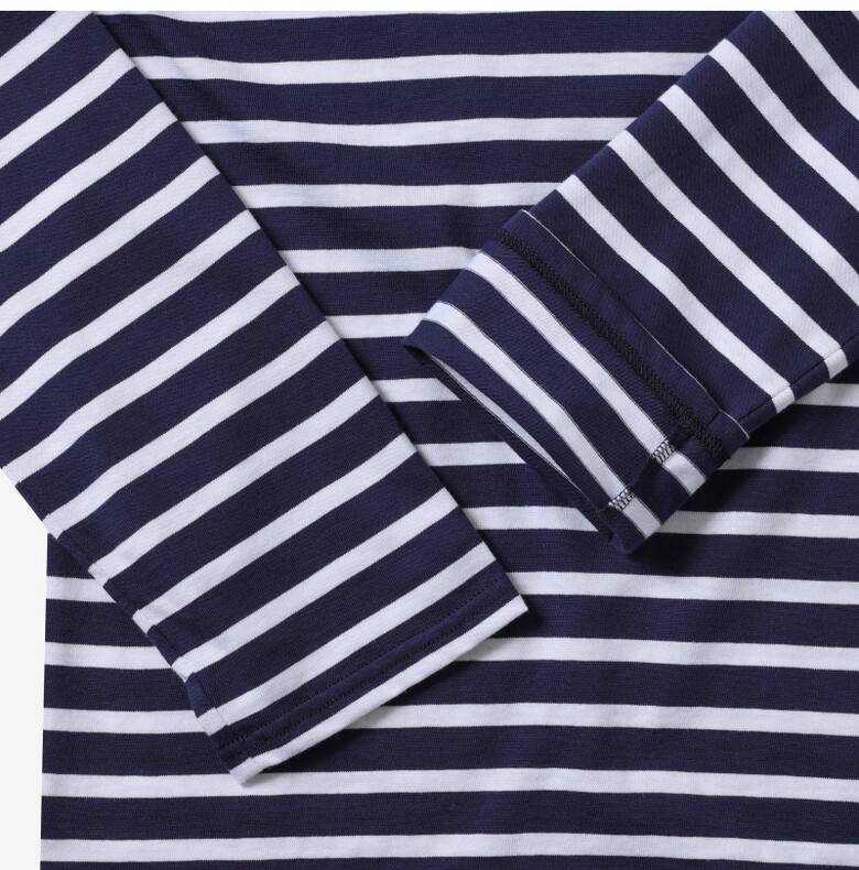 - #리본즈코리아 #9858MARINENEIGE #[명품] #세인트제임스 #9858 #MARINE #NEIGE #밍콰이어 #모던 #스트라이프 #공용 #긴팔티 #남성 #의류 #상의 #긴팔티셔츠