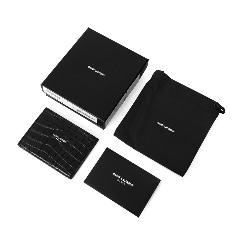 [명품] 생로랑 375946 DZE0E 1000 클래식 크로커다일 엠보싱 카드지갑