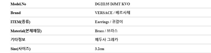 [명품] 베르사체 DG2I135 DJMT KVO 메두사 그레카 귀걸이