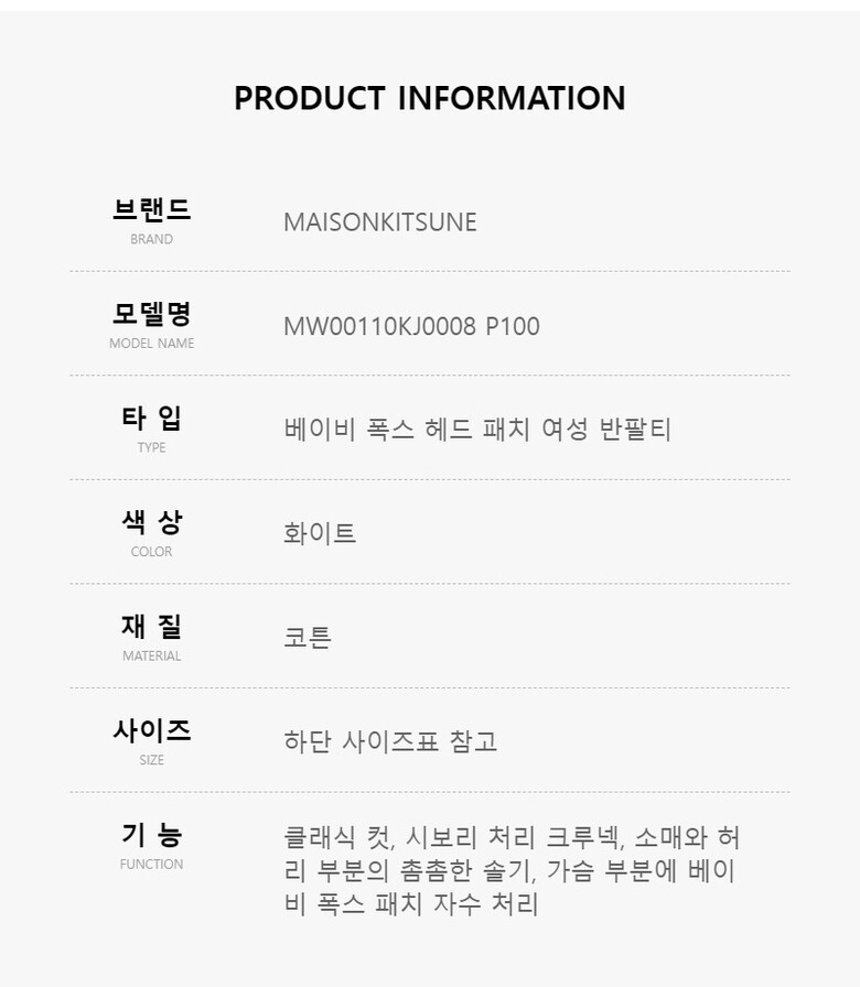 [명품] 메종키츠네 MW00110KJ0008 P100 베이비 폭스 패치 여성 반팔티