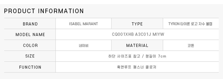 - #리본즈코리아 #CQ001XHBA3C01JMIYW #[명품] #이자벨마랑 #CQ001XHB #A3C01J #MIYW #TYRON #타이론 #로고 #자수 #볼캡 #여성 #패션잡화 #모자 #야구모자