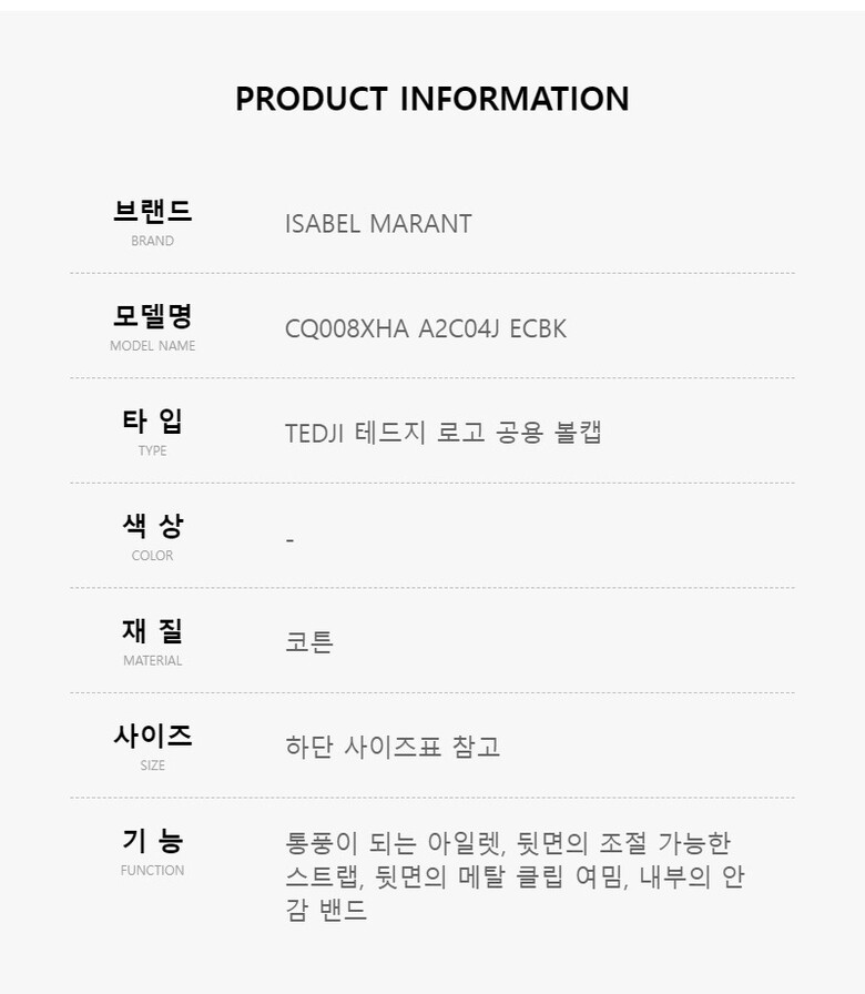 - #리본즈코리아 #CQ008XHAA2C04JECBK #[명품] #이자벨마랑 #CQ008XHA #A2C04J #ECBK #TEDJI #테드지 #로고 #자수 #볼캡 #여성 #패션잡화 #모자 #야구모자