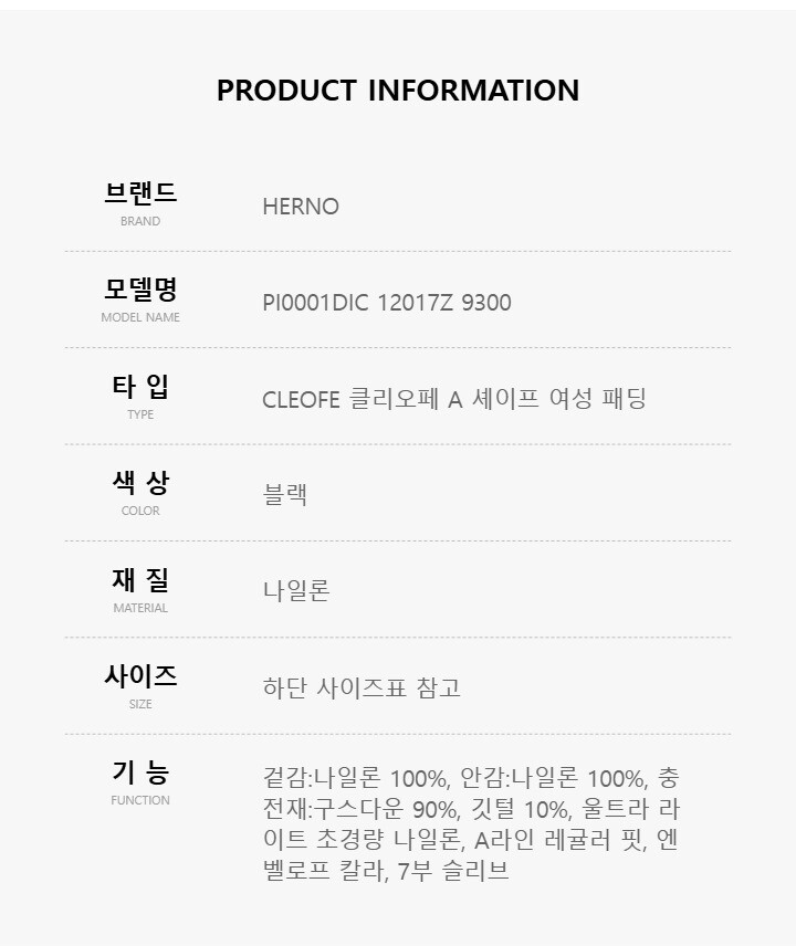 #리본즈코리아 #PI0001DIC12017Z9300 #[명품] #에르노 #PI0001DIC #12017Z #9300 #CLEOFE #클리오페 #A #셰이프 #여성 #패딩 #의류 #아우터