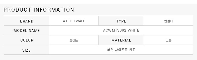 [명품] 어콜드월 ACWMTS092 WHITE 에센셜 로고 남성 반팔티