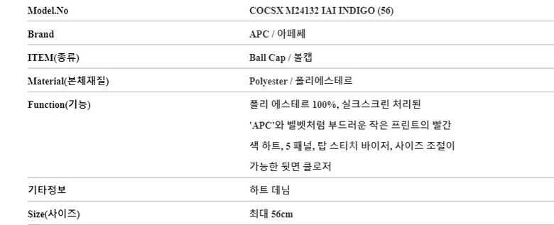 [명품] 아페쎄 COCSX M24132 IAI INDIGO EDEN 에덴 하트 데님 볼캡