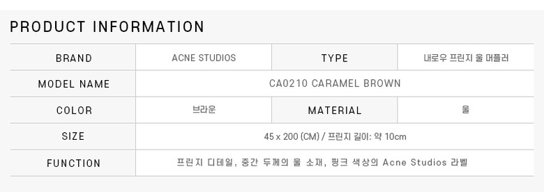 [명품] 아크네스튜디오 CA0210 CARAMEL BROWN 59C 내로우 프린지 머플러