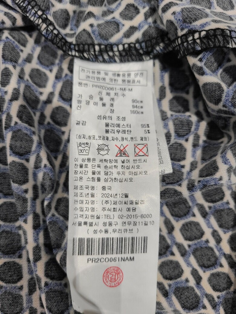 | 1. 제품 소재 (섬유의 조성 또는 혼용률을 백분율로 표시, 기능성인 경우 성적서 또는 허가서) | 폴리에스테르 95%, 폴리우레탄 5% |