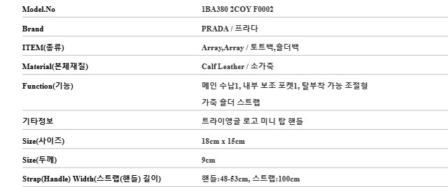 - #리본즈코리아 #1BA3802COYF0002 #[명품] #프라다 #1BA380 #2COY #F0002 #비텔로 #트라이앵글 #로고 #미니 #탑 #핸들 #토트백 #여성 #가방/핸드백
