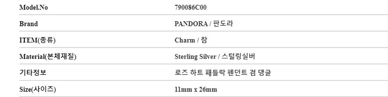 [명품] 판도라 790086C00 로즈 하트 패들락 펜던트 겸 댕글 실버 참