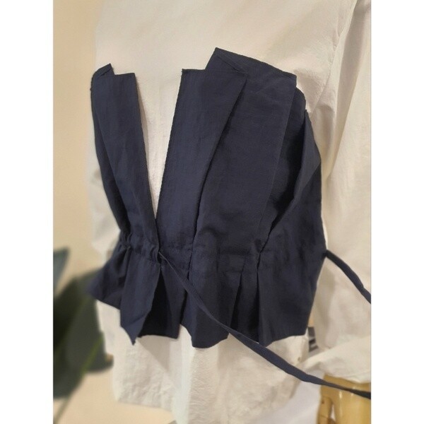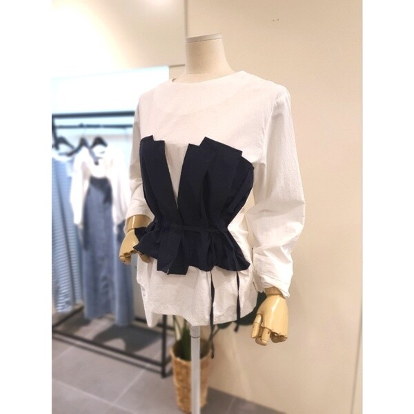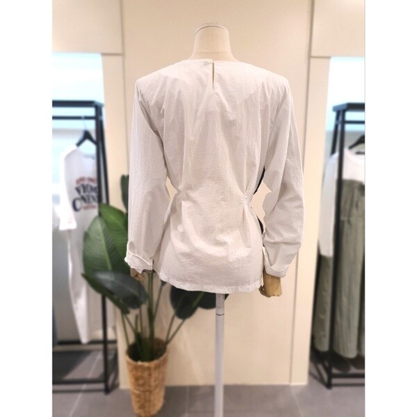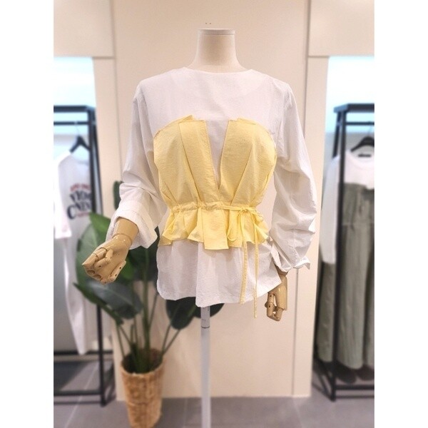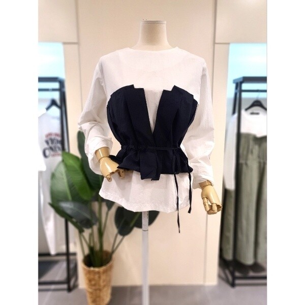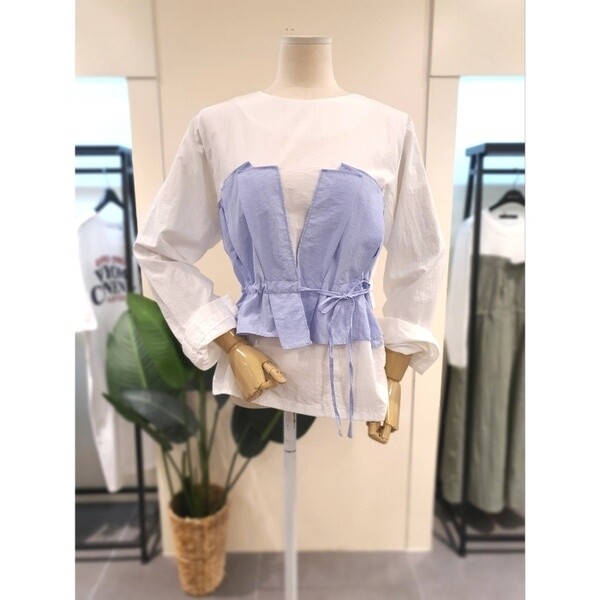뷔스티에를 레이어드한 듯한 라운드넥 블라우스입니다.