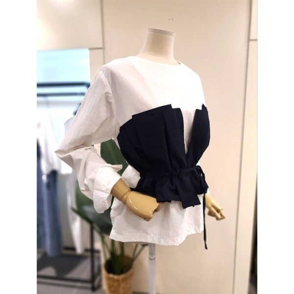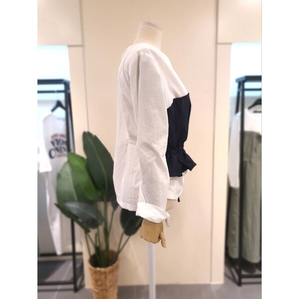 KOBLM315NA_레이어드 배색 블라우스 네이비