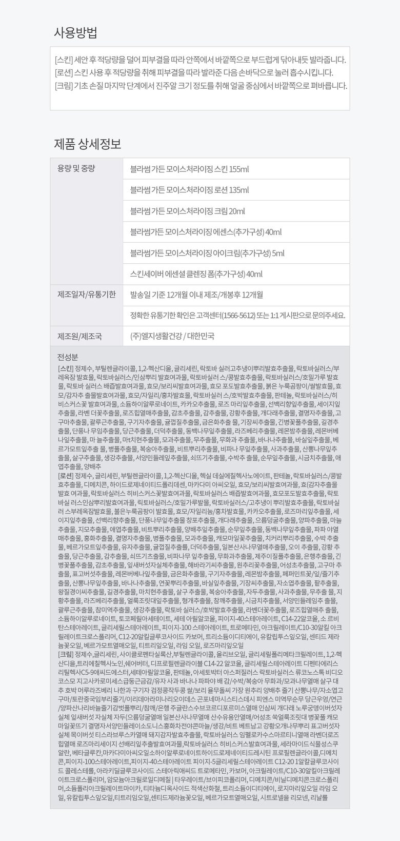 | 3. 제조연월과 사용기한 | 주문 시점으로부터 최근 1년 이내에 제조된 상품으로 배송/제조일로부터 36개월/개봉후 1년 이내 사용 |