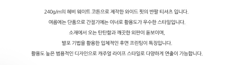 | 1. 제품 소재 (섬유의 조성 또는 혼용률을 백분율로 표시, 기능성인 경우 성적서 또는 허가서) | 100% 면 |