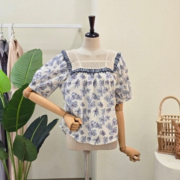 FM5D3BL32499_스퀘어넥 수술 플라워 블라우스