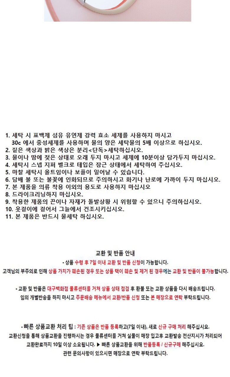 취급 시 주의사항 : 단독세탁,세탁기 및 표백성세제 사용금지